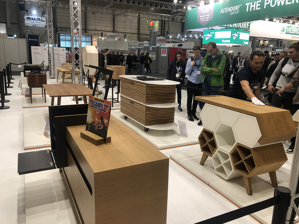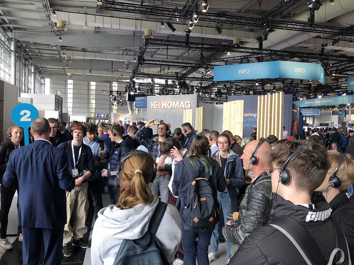 Am Stand von Homag, einem Hersteller von CNC-gesteuerten Holzbearbeitungsmaschinen, nahmen die Schüler an der HomagTour teil. Auf diese Weise konnten sie die neueste Technologie kennen lernen, unter anderem robotergestützte Maschinen. Im Homag-Innovationszentrum konnten die Schüler einen Einblick in die Zukunft des Unternehmens gewinnen, unter anderem durch interaktive Videos.
