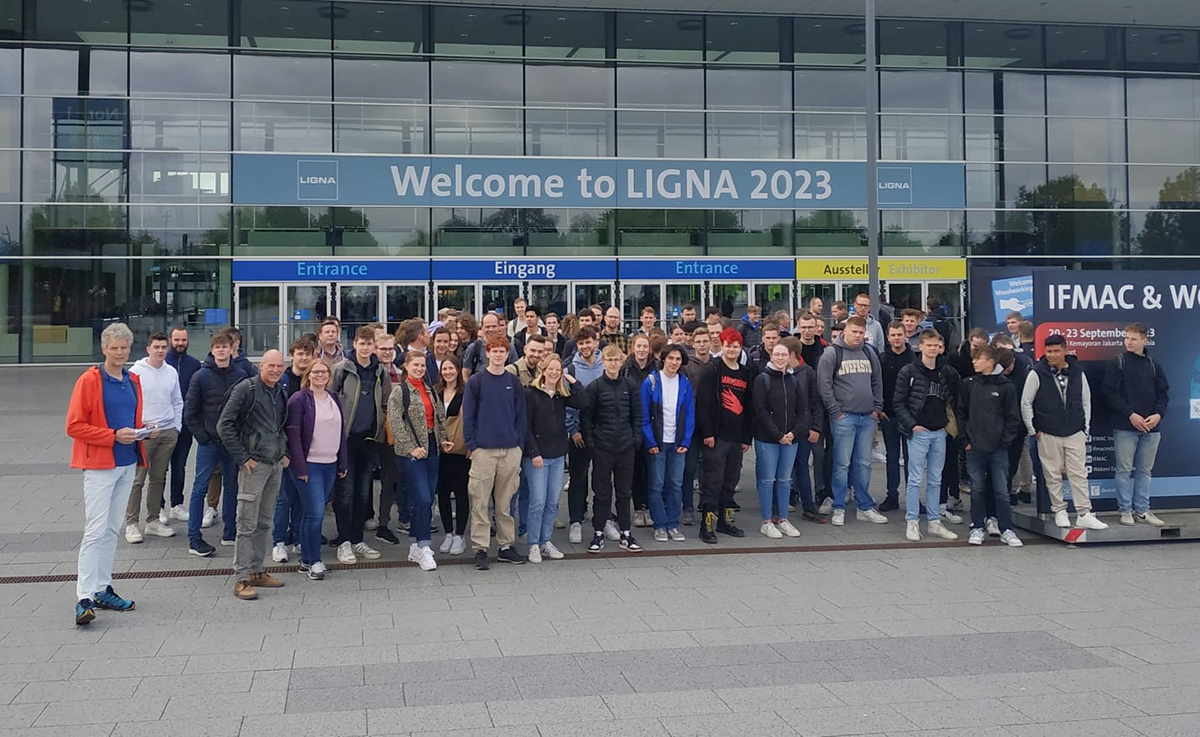 Fast dreihundert Schülerinnen und Schüler aus den Möbelausbildungsgängen des ROC van Twente, des Deltion College, des Berufskollegs für Technik Ahaus (BTA) und der Technischen Schulen des Kreises Steinfurt besuchten am 17. Mai die LIGNA in Hannover. Die LIGNA gilt als die weltweit führende Fachmesse für die holzverarbeitende Industrie.