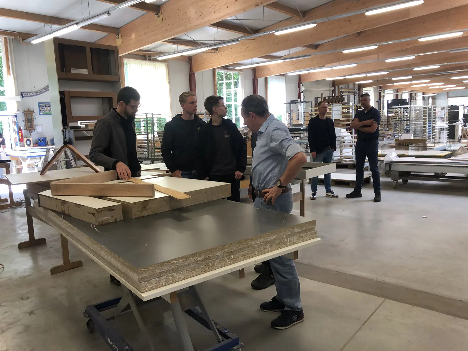 Das Ziel dieses Gesprächs war daher auch, Begeisterung zu wecken. Anwesend waren EURES-Berater für Arbeitgeberdienste (Werkplein Twente), Kroeze Interieurbouw und drei ROC-Schüler der Fachrichtung Möbel und Interieur sowie ihr Praktikumsbetreuer.