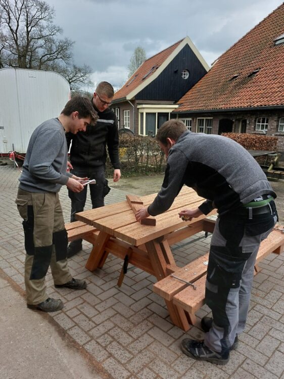 Sieben deutsche Auszubildende kamen nach Hengelo in die Niederlande um dort eine Parkbankgarnitur für den Englischen Garten in Ootmarsum und eine Massivholzküche für das Museum Ootmarsum zu bauen. Sieben niederländische Auszubildende waren in derselben Woche in Ahaus um dort ebenfalls eine Gartensitzgruppe und ein Lesepult für das Kloster Bentlage bei Rheine anzufertigen.