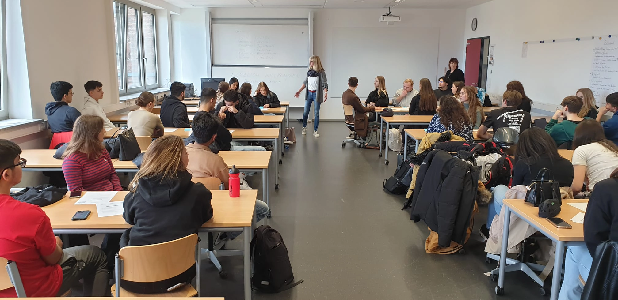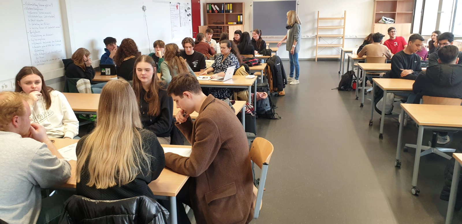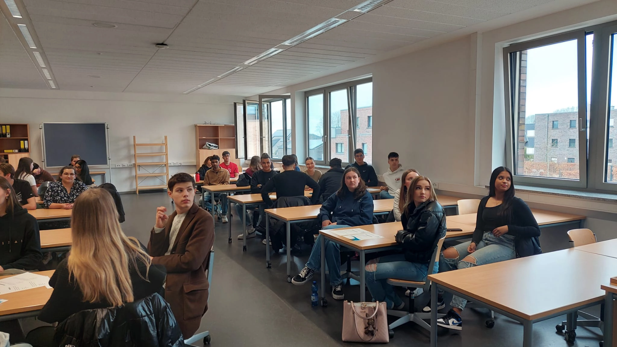 Am Morgen wurden wir gastfreundlich von Kollegen und Schülern des Berufskollegs Geldern empfangen. Nach einer kurzen Vorstellung des Tagesablaufs wurden Gruppen aus deutschen und niederländischen Schülern gebildet. Gemeinsam erkundeten sie das Gebäude und nahmen an Unterrichtsstunden teil. Es war großartig zu sehen, wie die Schüler miteinander in Kontakt traten. Nicht nur auf Deutsch und Niederländisch, sondern auch auf Englisch und Türkisch. Die sprachlichen und kulturellen Unterschiede waren kein Hindernis, sondern bildeten vielmehr eine Brücke zwischen den Schülern.