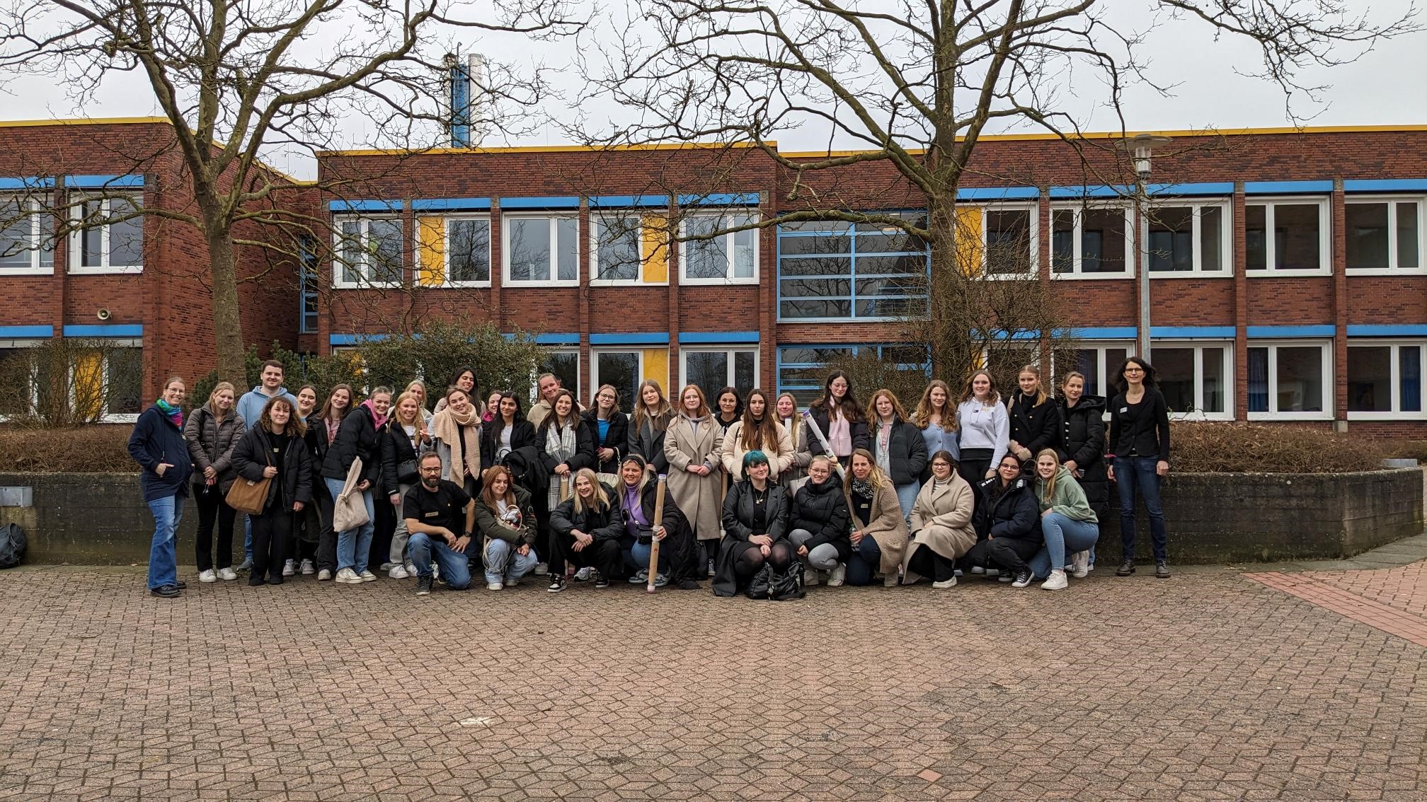 Op dinsdag 5 maart ’24 waren de Duitse studenten aan de beurt om in de bus te stappen voor de terug uitwisseling. De Nederlandse studenten uit Almelo deden zelf het verzoek of zij alsjeblieft bij dezelfde studenten ingedeeld konden worden. De contacten waren dusdanig goed dat zij graag weer samen aan de slag wilden gaan. Na ontvangst met koffie en thee werden er allerlei kinderspelletjes gedaan in de sportzaal. Met name de verschillen tussen de Duitse en Nederlandse versies van “zakdoekje leggen” zorgde voor veel hilariteit en riep interesse op.