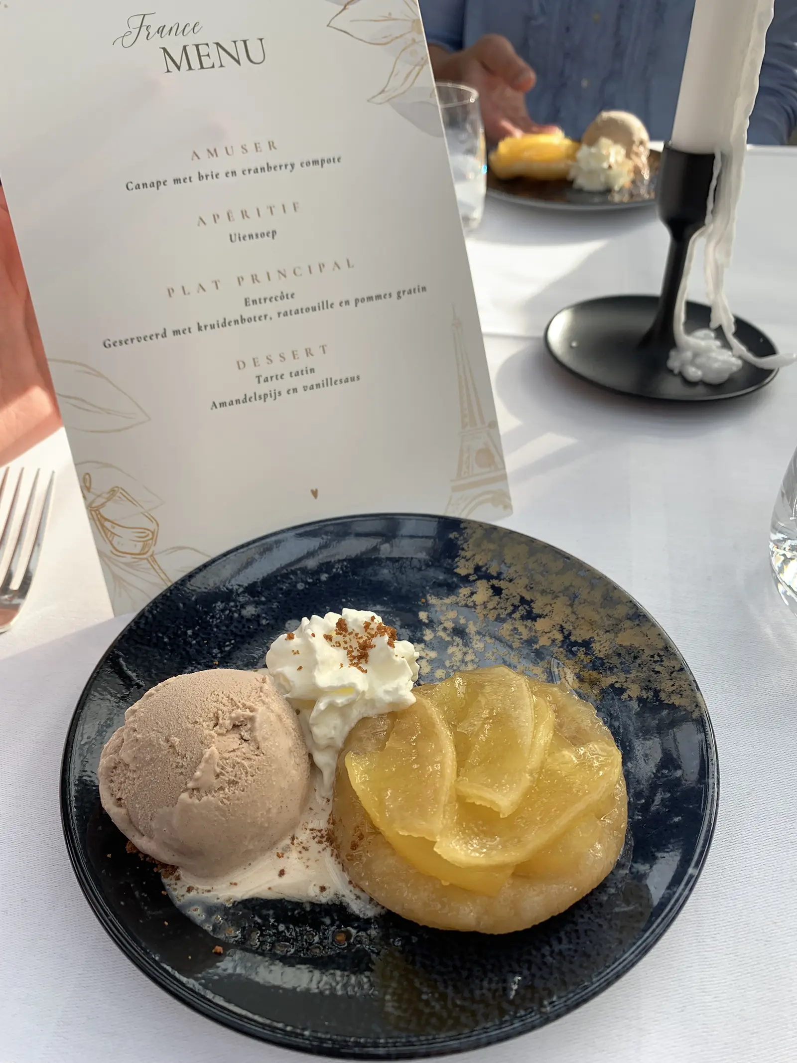 Bij aankomst kregen we een warm welkom van de Nederlandse studenten van het Graafschap College. Als Duitse gasten werden we direct in het Duits begroet en naar ons ‘restaurant’ en onze tafel begeleid. In ons geval het Franse restaurant ‘LA MER’.