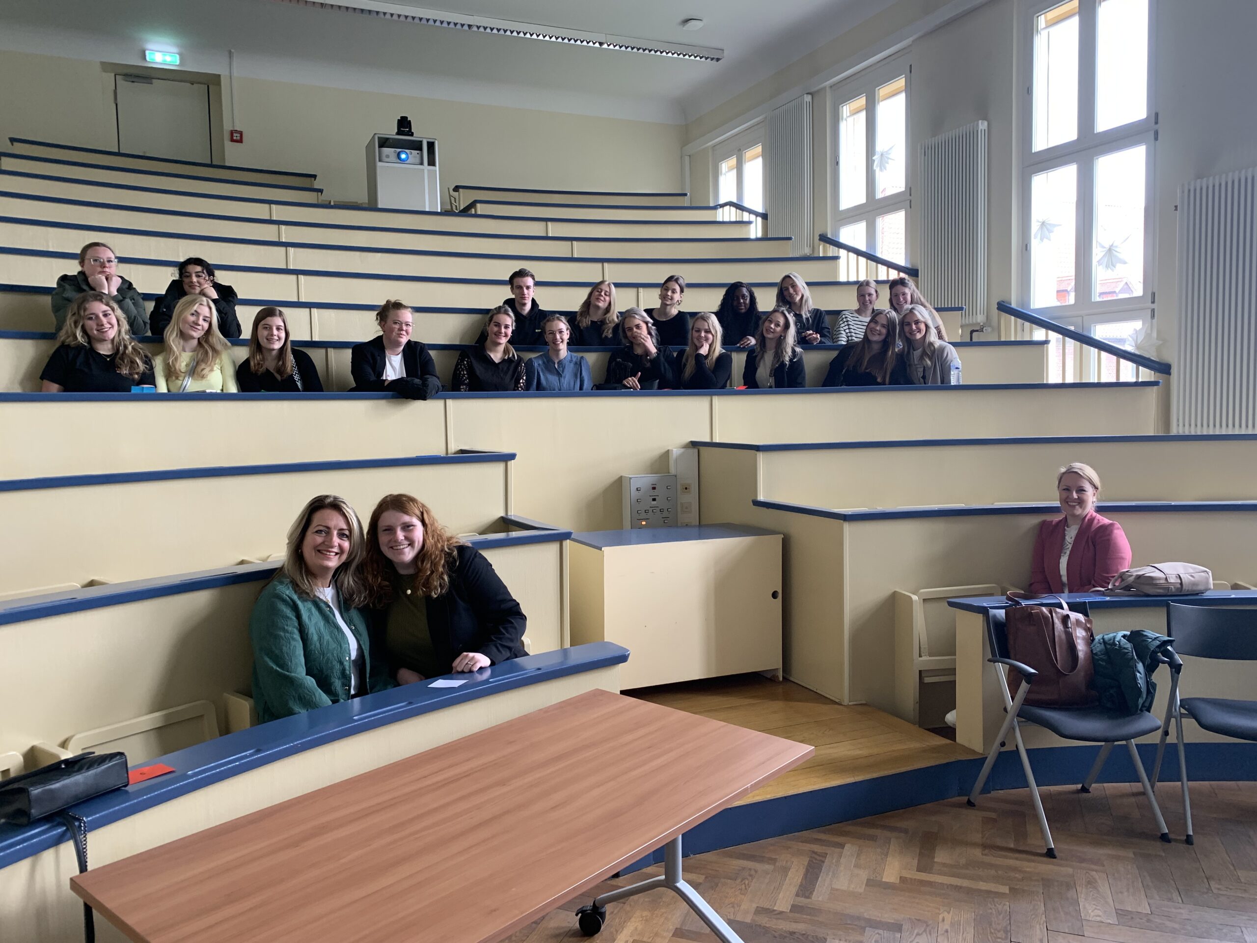 Op 25 april hebben wij met een bus vol studenten van de opleiding MBO Verpleegkundige niveau 4 een bezoek gebracht aan het UKM, het academisch ziekenhuis in Münster. We hadden voor deze dag 3de-jaars studenten uitgenodigd om een kijkje te nemen in dit ziekenhuis waarmee we een jarenlange vruchtbare samenwerking hebben en vaste stageplekken op vier afdelingen. De belangstelling onder studenten is altijd groot, sowieso willen de studenten vaak het liefst stage lopen in een ziekenhuis, als het dan ook nog een academisch ziekenhuis is, is dat helemaal leuk. De omgeving is dynamischer en de specialismen gevarieerder. Voor deze stage komen uitsluitend 4de-jaars studenten in aanmerking. We hopen dus deze groep studenten te kunnen enthousiasmeren.
